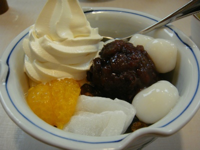 少し歩いたお店で、白玉クリームあんみつを食べました