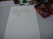 今回は、線をカラーインクで描いて、色鉛筆で塗ろうかと・・・・